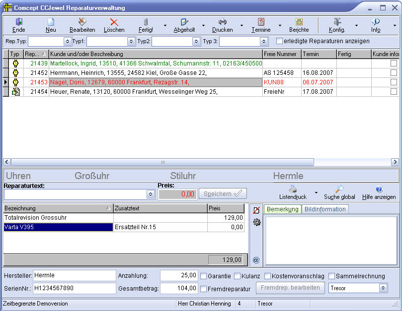 Eigenständige Version der Reparaturverwaltung CCJewel (nicht nur für Uhren/Schmuck)!